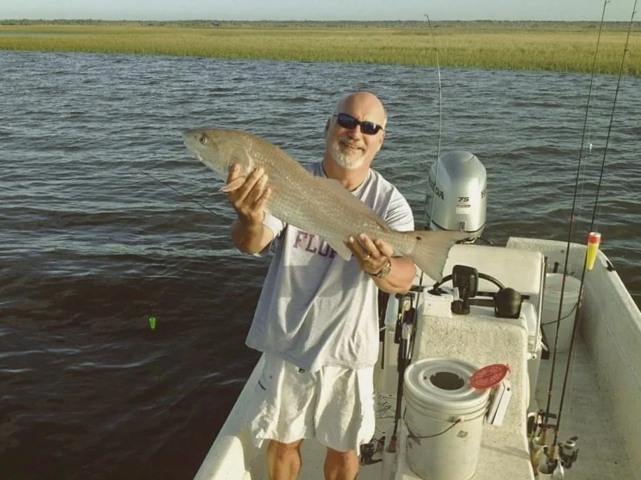 Dan Alford (1954–2019) spent nearly four decades fishing the waters of Cedar Key, sharing his love of the outdoors with friends, family, and anyone who wanted to be on the water. While he loved catching all kinds of fish, redfish were his favorite. Dan never fished tournaments — for him, fishing was about time on the water, good company, and the joy of the chase. He was laid-back by nature but famously competitive on the water, never shy about letting others know when he was catching more fish — often brutal, always funny — and always welcoming to anglers of any experience level.